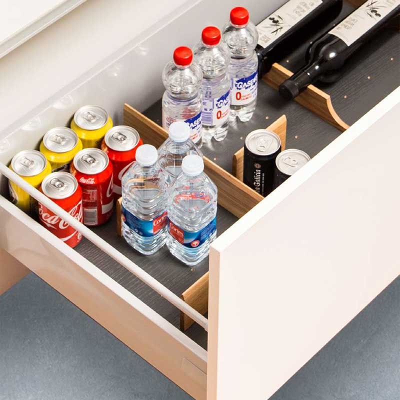El Mix Set 5 de Cucine Oggi es un sistema organizador diseñado para optimizar el espacio en caceroleros de 900 mm. Su acabado en roble y fondo perforado en color antracita aporta resistencia y estilo moderno, permitiendo un ordenado más eficiente de tu cajón cacerolero.
