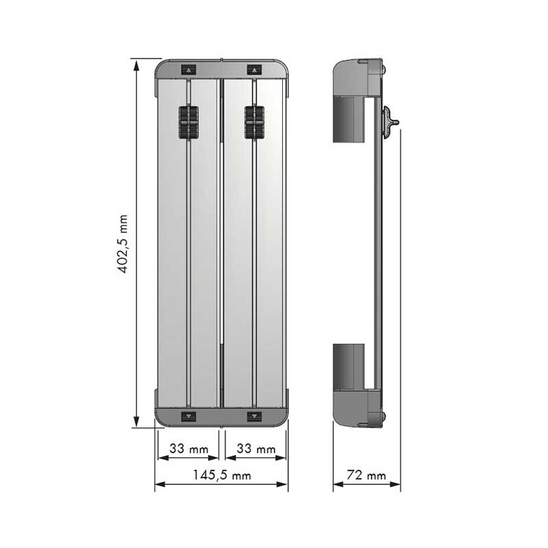 Soporte para rollos de aluminio o plástico film fabricado en aluminio color plata compatible con bandeja cubertero multiuso Classic de Menage & Confort. Medida (ancho x alto x fondo): 145,5 x 72 x 402,5 mm.