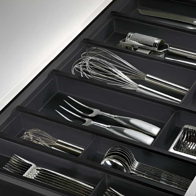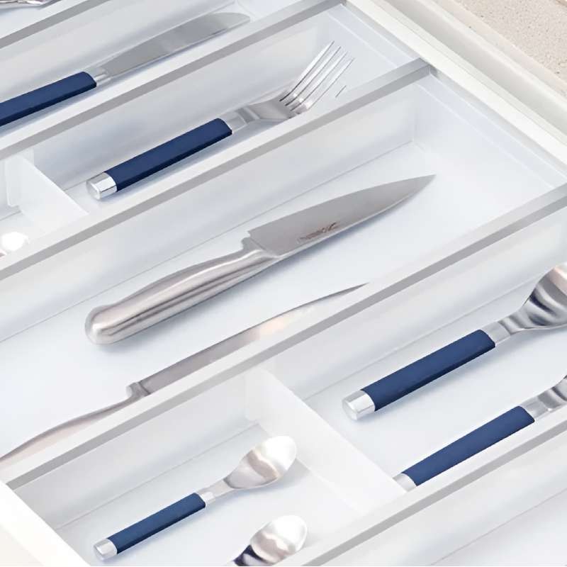 Cubertero Fusion System Set 4 para cajones de 500 mm, con cubetas modulares, varillas y terminales que ofrecen una organización moderna