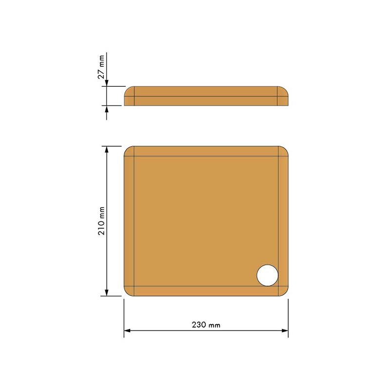 Tabla de cortar de madera natural compatible con cubertero M&C de Menage&Confort. Medida (ancho x alto x fondo): 210 x 27 x 230 mm.