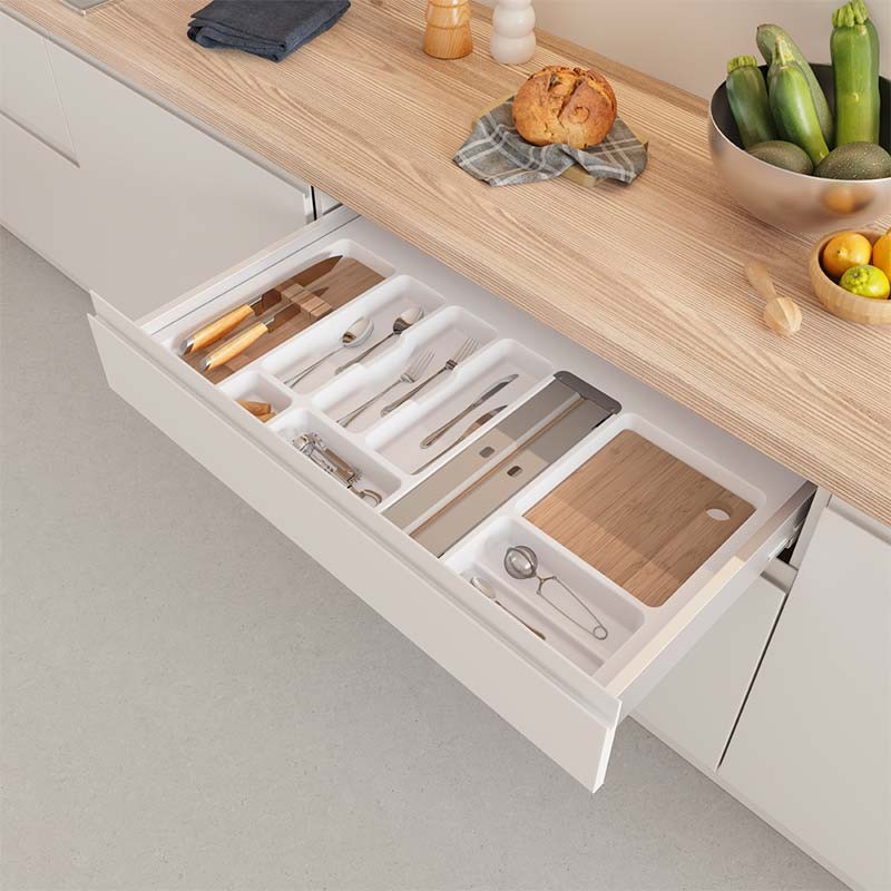 Cubertero universal para cajones de cocina que se adapta con facilidad a la mayoría de cajones del mercado.