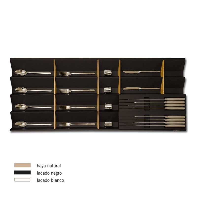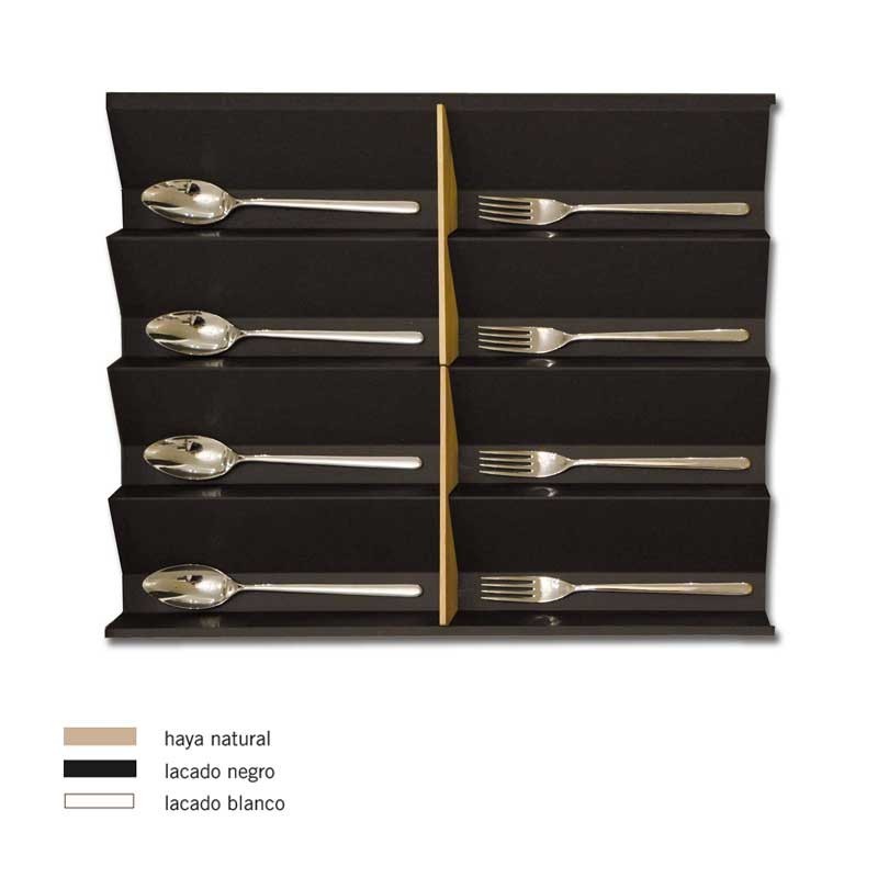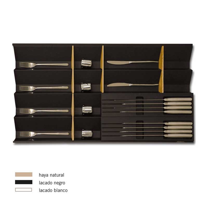 Cubertero de madera modelo Marea para cajones de cocina. Disponible en 3 colores a elegir, y para diferentes medidas de mueble. No incluye divisores ni portacuchillos.