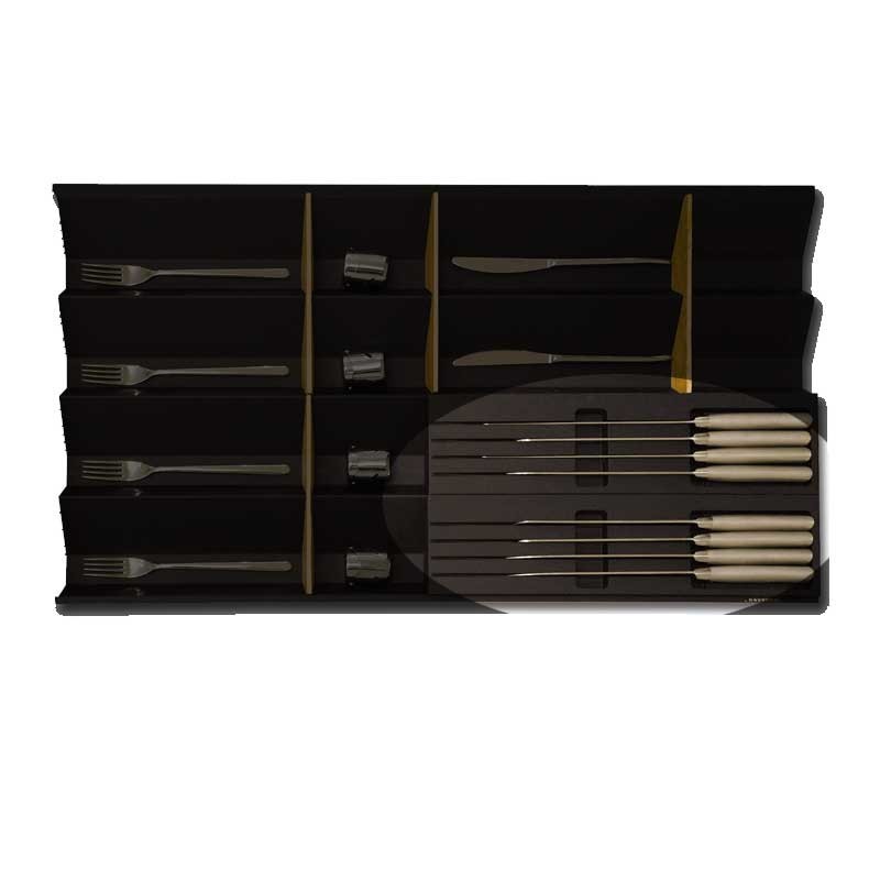 No incluye cubertería ni ningún tipo de accesorio. Los accesorios pueden adquirse por separado según las necesidades de cada usuario.