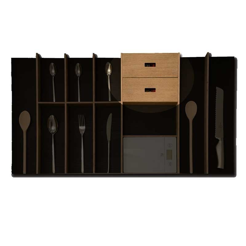 Caja de madera de roble para almacenamiento compatible con cubertero modelo Marea de 900mm (RI900A) y 1200 mm (RI120B). Medidas: 200x94x47 mm.