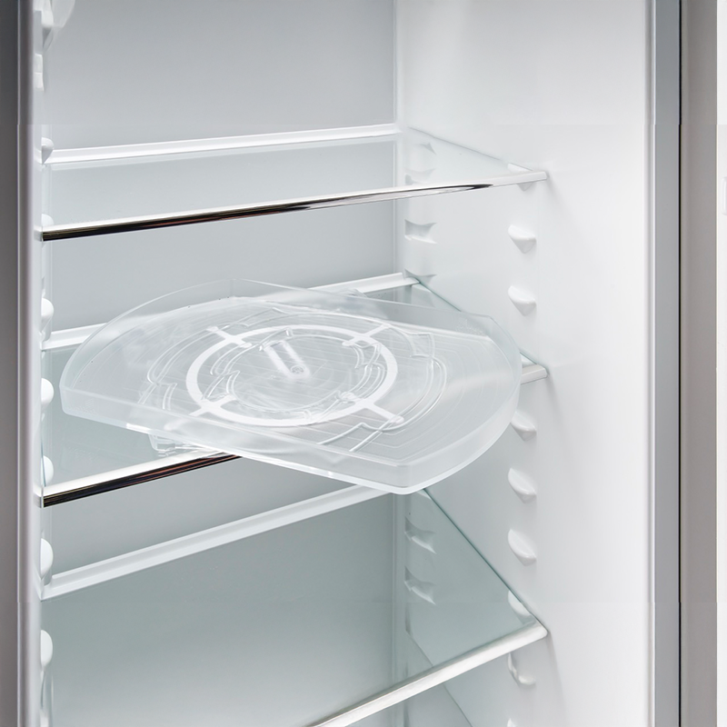 Bandeja giratoria ComfortSpin de ABS apto para alimentos, fácil de instalar, gira 360°, soporta 8 kg. Dimensiones: 42x28x3,7 cm.