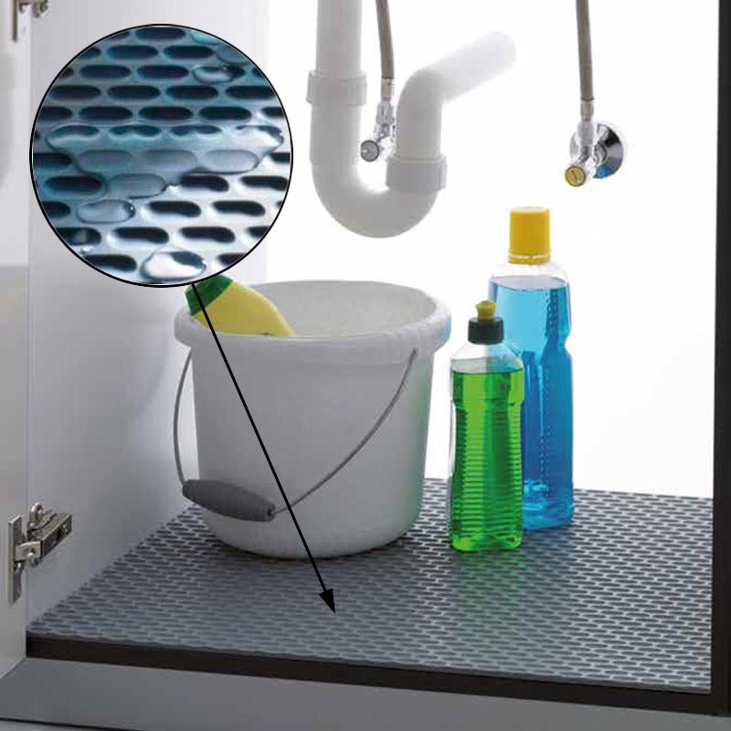 Protector de PVC color gris que ayuda a proteger y aislar de la humedad la base del mueble fregadero de cocina. Disponible en 2 tamaños, aunque es fácilmente recortable para adaptarlo a cualquier medida.