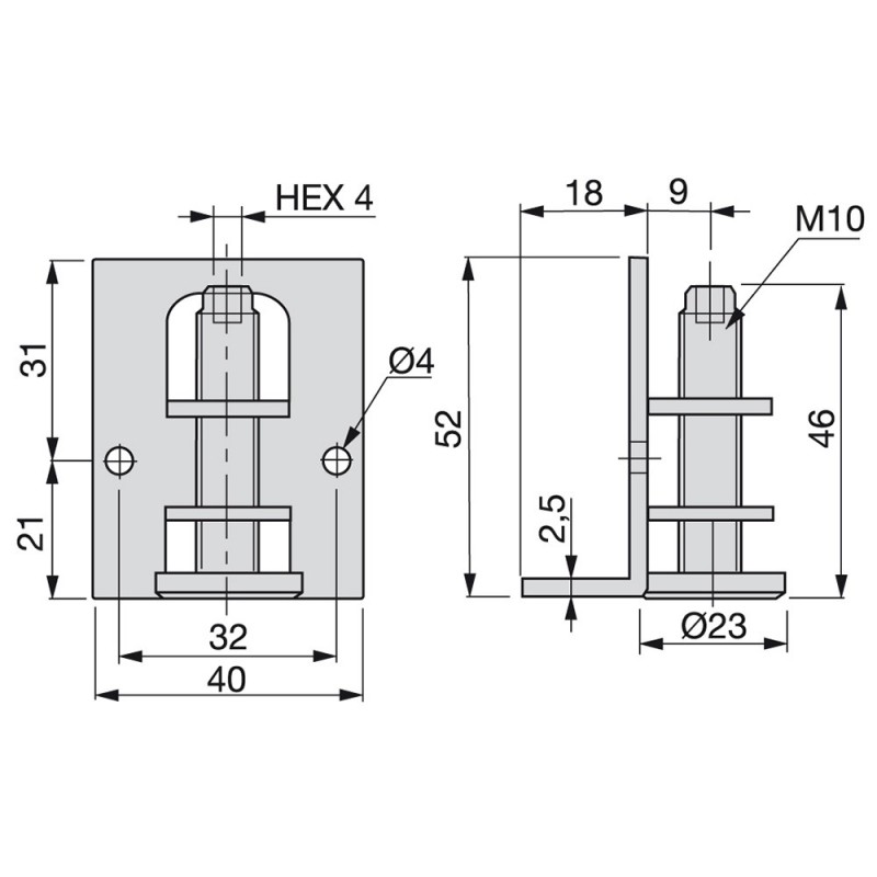 El pie nivelador M10 para muebles está diseñado para regular y nivelar de forma sencilla todo tipo de muebles. La regulación del nivelador se realiza desde el interior del mueble con una llave hexagonal 4. Dispone de tornillo M10, una escuadra que se atornilla al mueble y una tapa de plástico color negro.