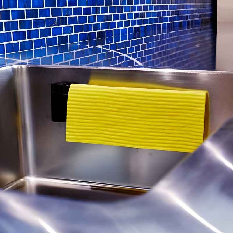 Posee un imán en la parte posterior para fijarlo al fregadero (imprescindible usar el adhesivo que lleva para una perfecta fijación del imán).