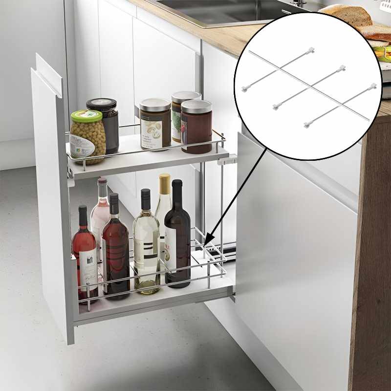 El separador botellero es un accesorio diseñado para organizar botellas en módulos extraíbles botelleros de la línea Compact. Fabricado en acero cromo, ofrece una solución resistente y estética para mantener las botellas en posición, evitando movimientos durante la apertura o cierre del módulo.