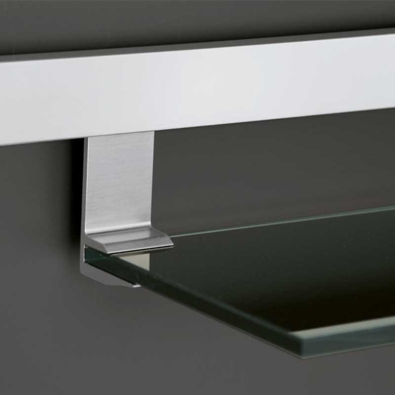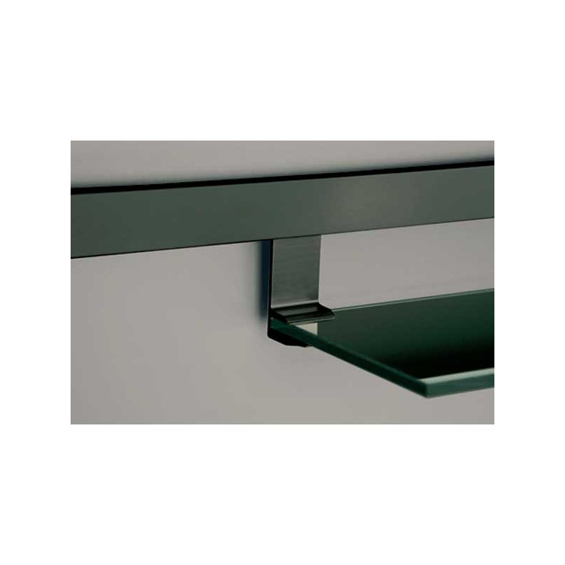 Ménsula de cristal para cocina compatible con barra linero modelo Titan. Disponible con soporte en acabado efecto inox o negro. Fondo de 160 mm. Largo a elegir.