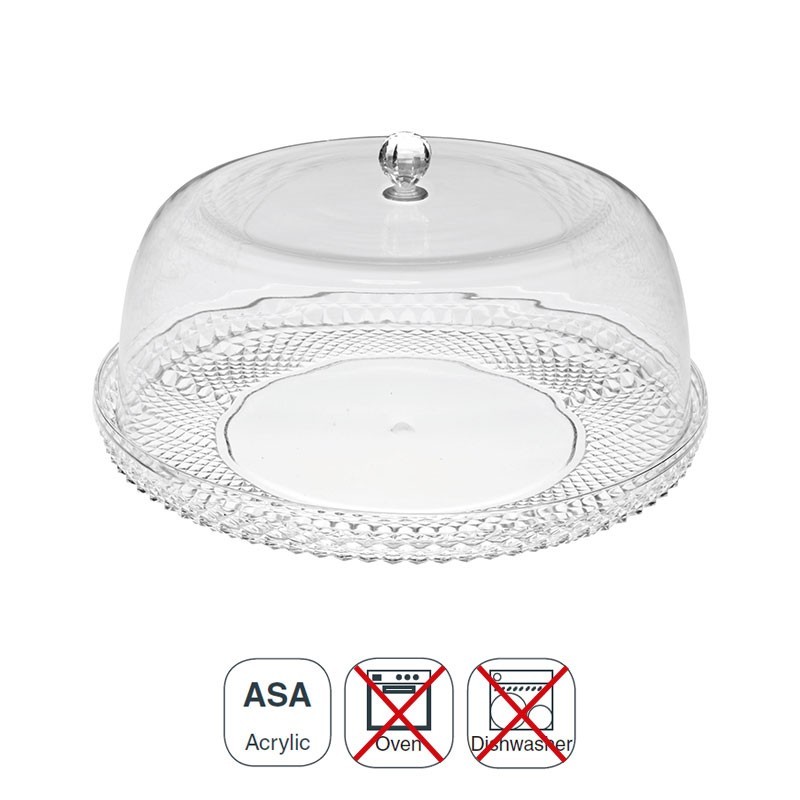 Campana cubre quesos o tartas fabricada en plástico acrílico transparente con pomo para facilitar su agarre. Diámetro: 32 cm.