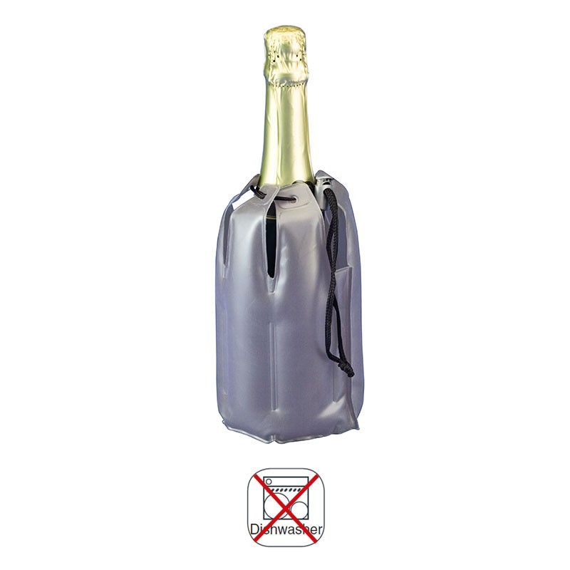 Funda de gel con cordón de cierre para enfriar botellas de vino, cava o similares. Adaptable a la mayoría de botellas de 0,7 y 1 litro.