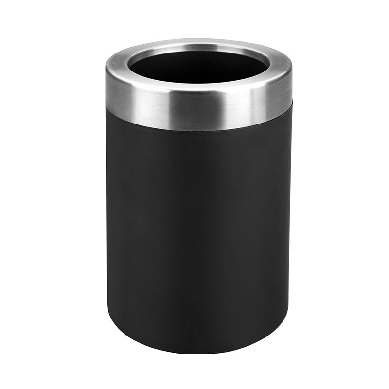 Recipiente enfriabotellas de acero inoxidable y doble pared de 12,5x20 cm de exterior y 9,5 cm de diámetro interior.