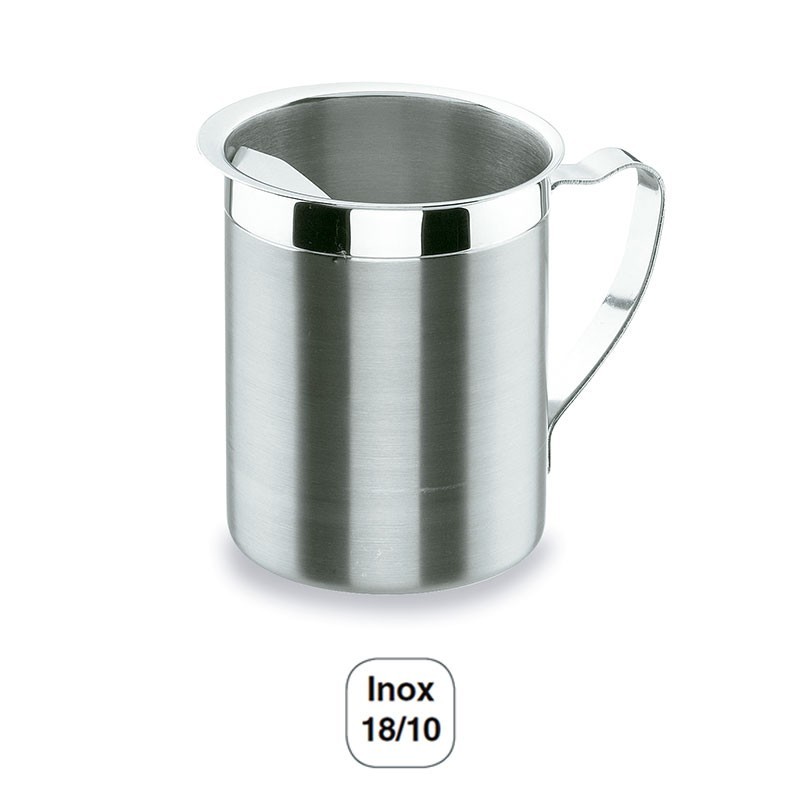 Jarra con retén en el borde fabricada en acero inoxidable 18/10 de alta calidad y excelente resistencia a la corrosión. Disponible en varias medidas.