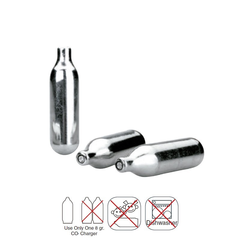Pack de 10 cargas de CO2 de 8 gramos cada una para botellas de aluminio sifón de Lacor.