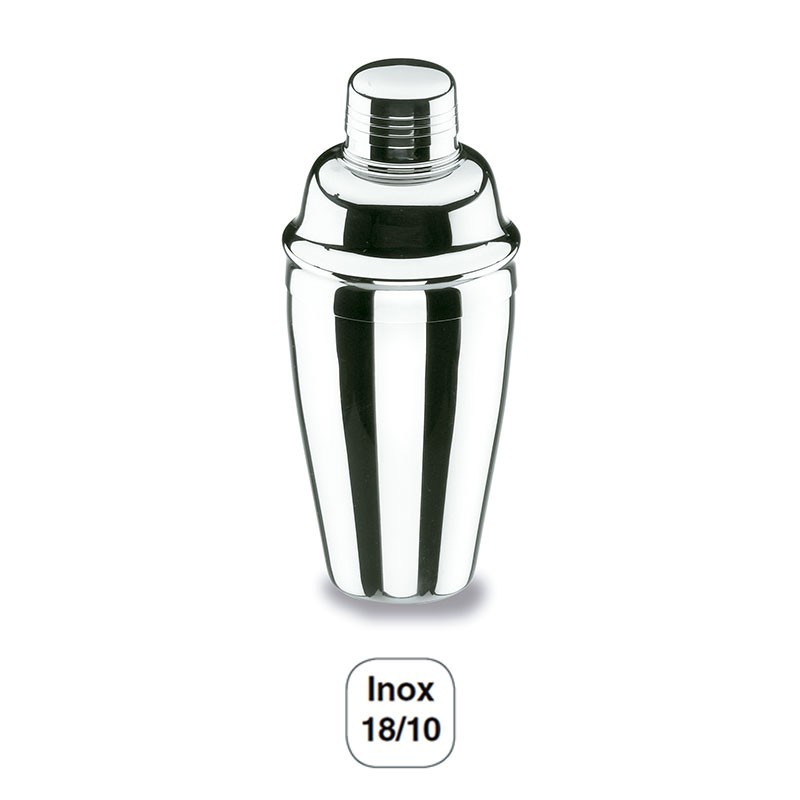 Coctelera con tapón fabricada en acero inoxidable de gran calidad y excelente resistencia a la corrosión. Disponible en varios tamaños.