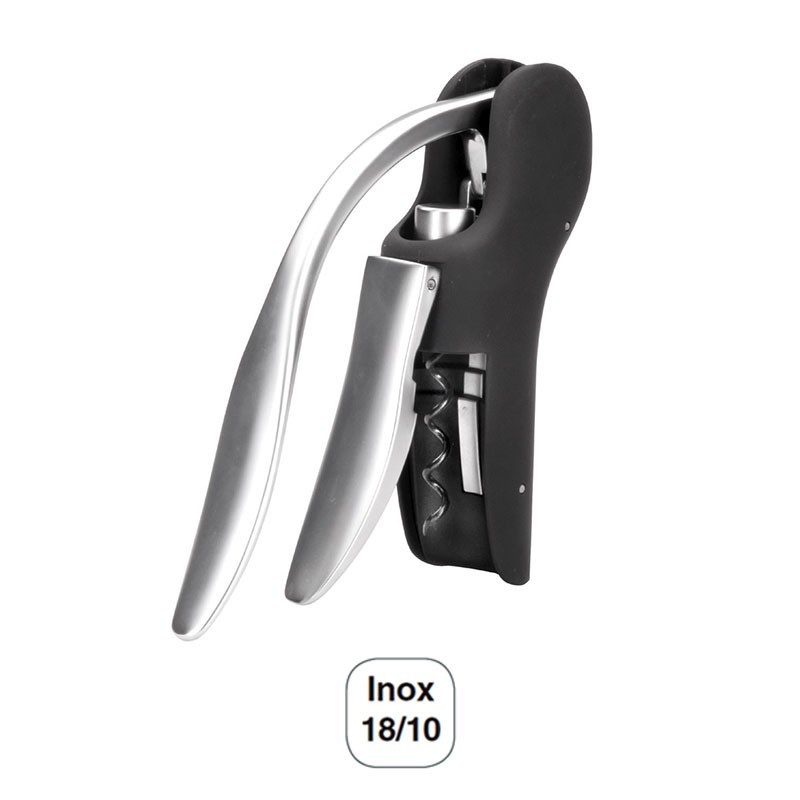 Sacacorchos de mesa fabricado en zamak en color negro y cromado de gran calidad. Abre las botellas de vino de forma fácil y sin esfuerzo.