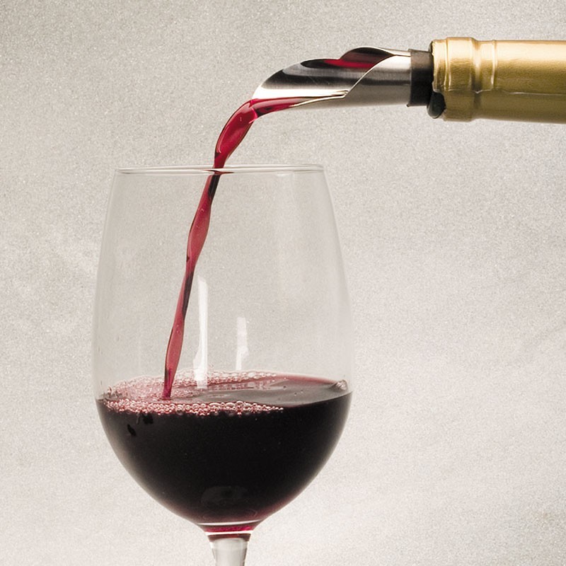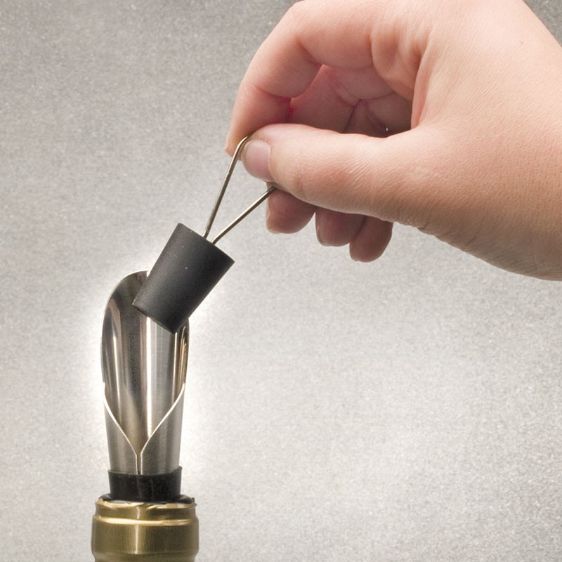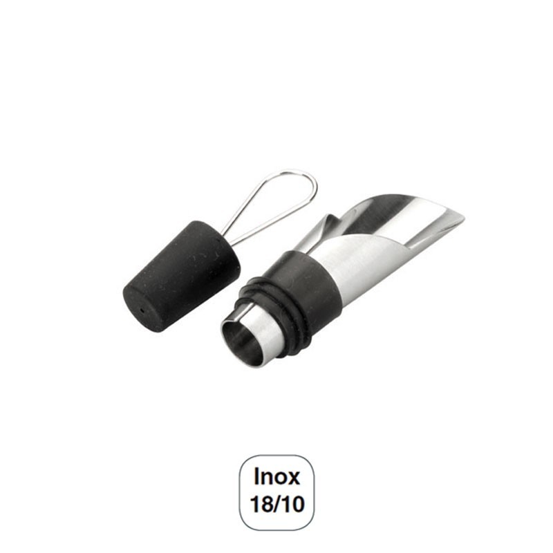 Set con una boquilla de acero inoxidable para servir vinos de forma limpia, más un tapón universal cónico.