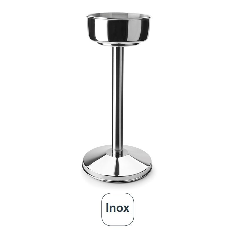 Pie porta-cubos enfriabotellas fabricado en acero inoxidable de gran calidad y excelente resistencia a la corrosión. Diámetro: 20 cm. Altura: 65 cm.