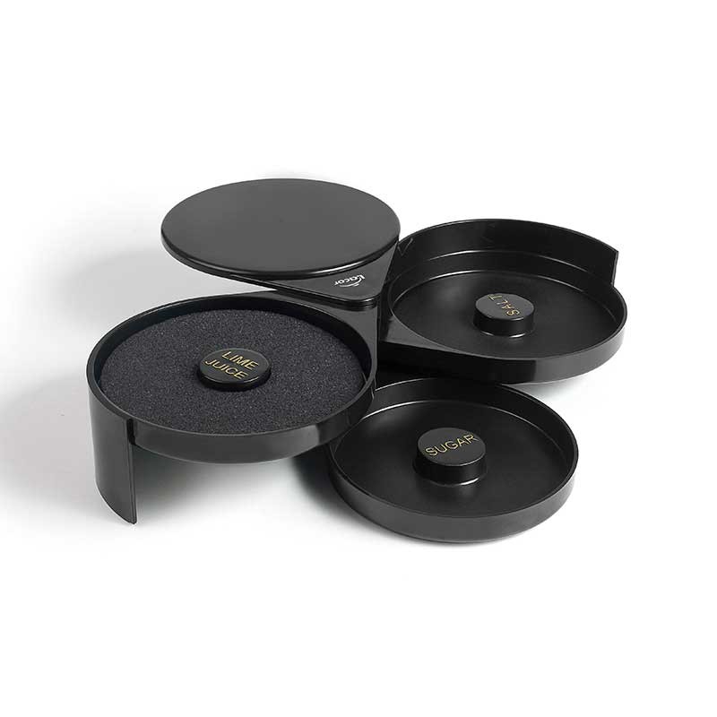 Accesorio con 3 compartimentos bien identificados y diseño plegable ideal para dar un toque especial a los cócteles.