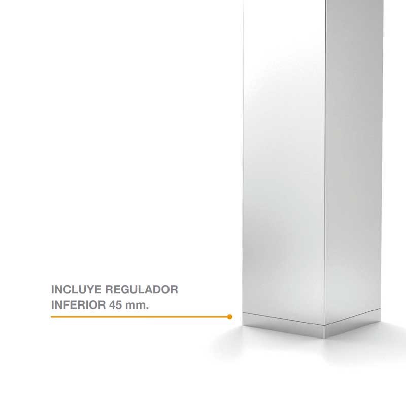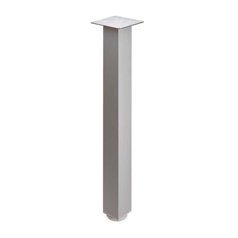 Pata cuadrada de aluminio de 60 x 60 mm para penínsulas de cocina. Disponible en 2 acabados, cromo brillo e inox.
