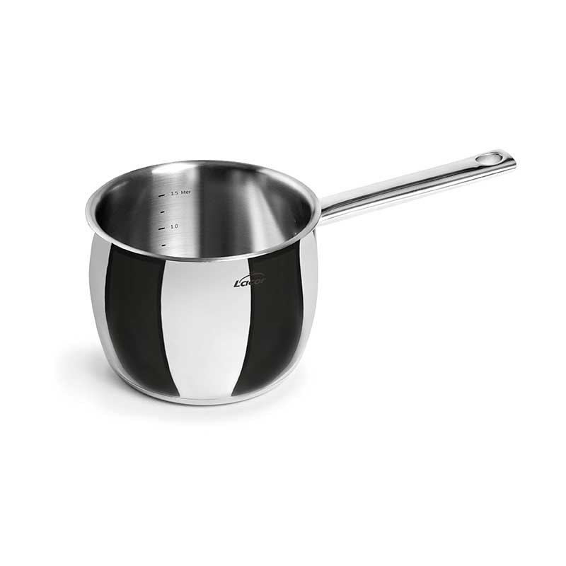 Pote para cocinado modelo Belly fabricado en acero inoxidable 18/10 con fondo termodifusor sándwich apto para placas de inducción, eléctricas, vitrocerámicas y cocinas de gas.