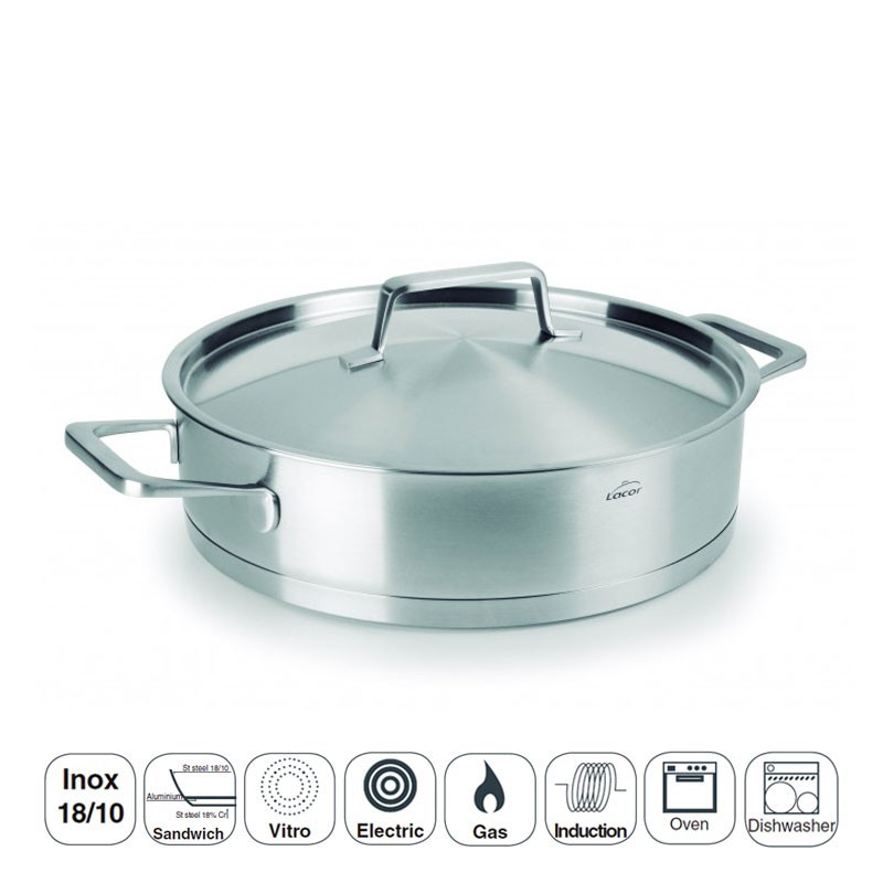 Sus principales características son su acabado interior y exterior lijado satinado combinado con asas ergonómicas de acero inoxidable fundido.