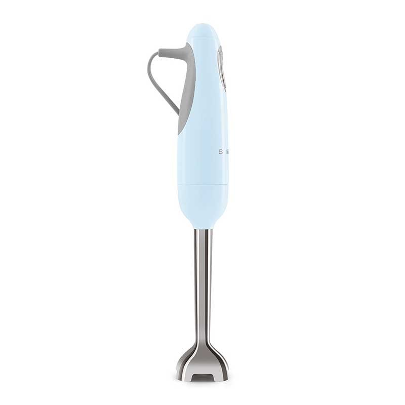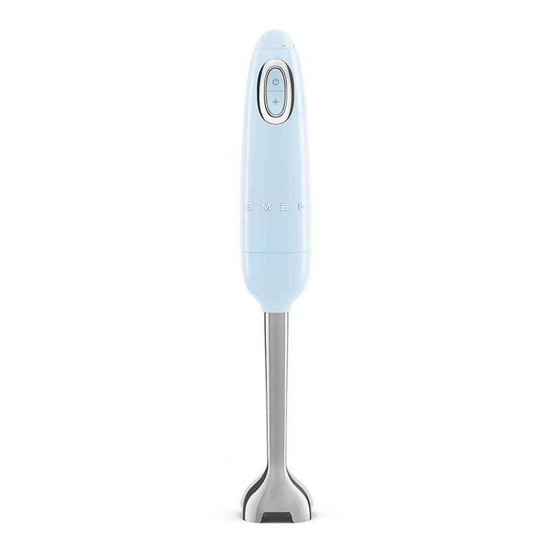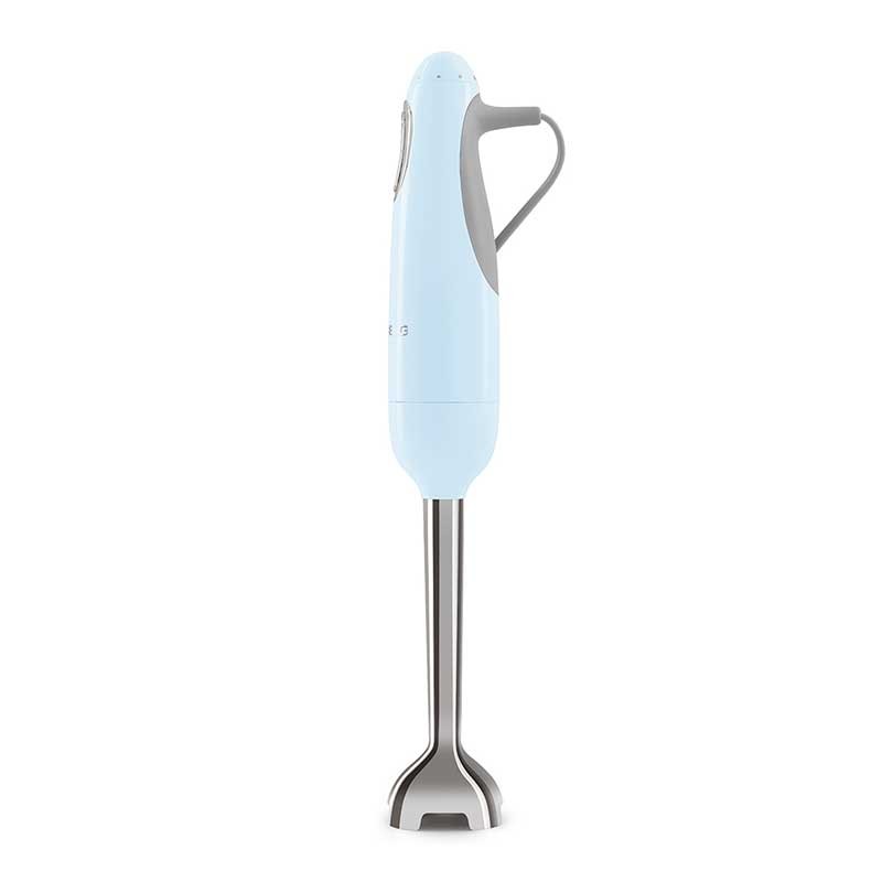 Batidora de mano Smeg 50's Style acabado azul cielo brillo con 700 W de potencia, velocidad variable y función turbo.