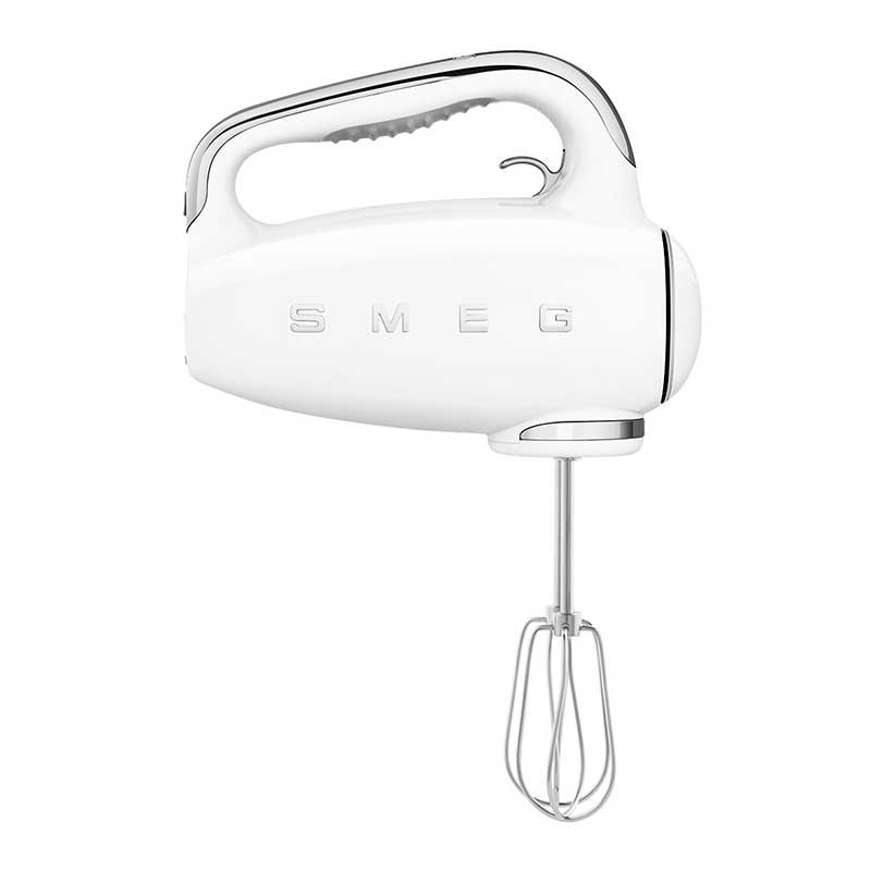 Batidora eléctrica de varillas Smeg 50's Style acabado blanco con 250 W de potencia, 9 niveles de velocidad y función turbo.