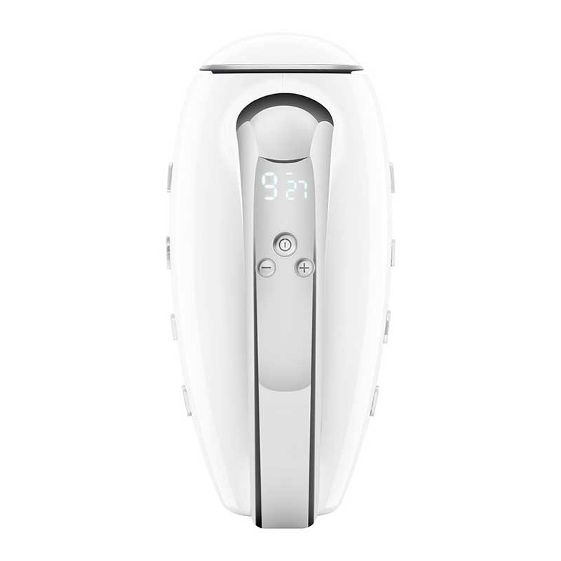 El panel de control está equipado con una pantalla LED retroiluminada que aporta elegancia y muestra el nivel de velocidad y tiempo de uso: una interfaz amigable que desaparece cuando se apaga el producto, quedando perfectamente integrada dentro del mango cromado.
