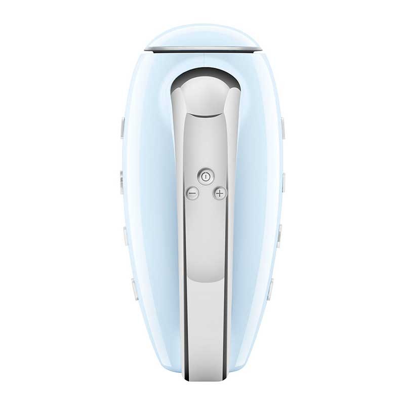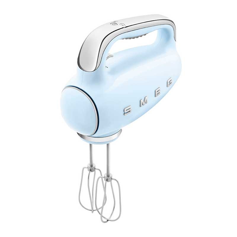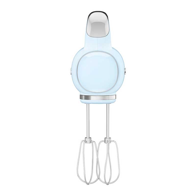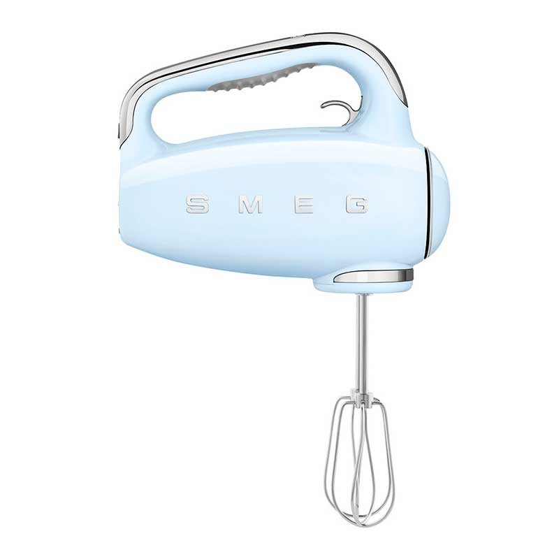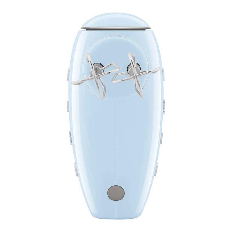 Batidora eléctrica de varillas Smeg 50's Style acabado azul cielo brillo con 250 W de potencia, 9 niveles de velocidad y función turbo.