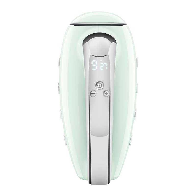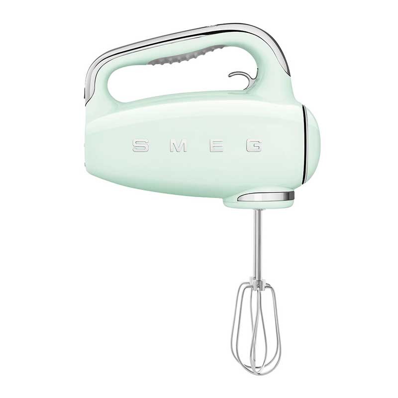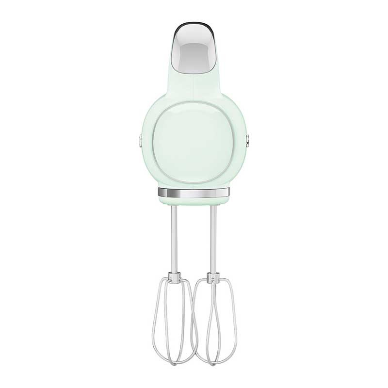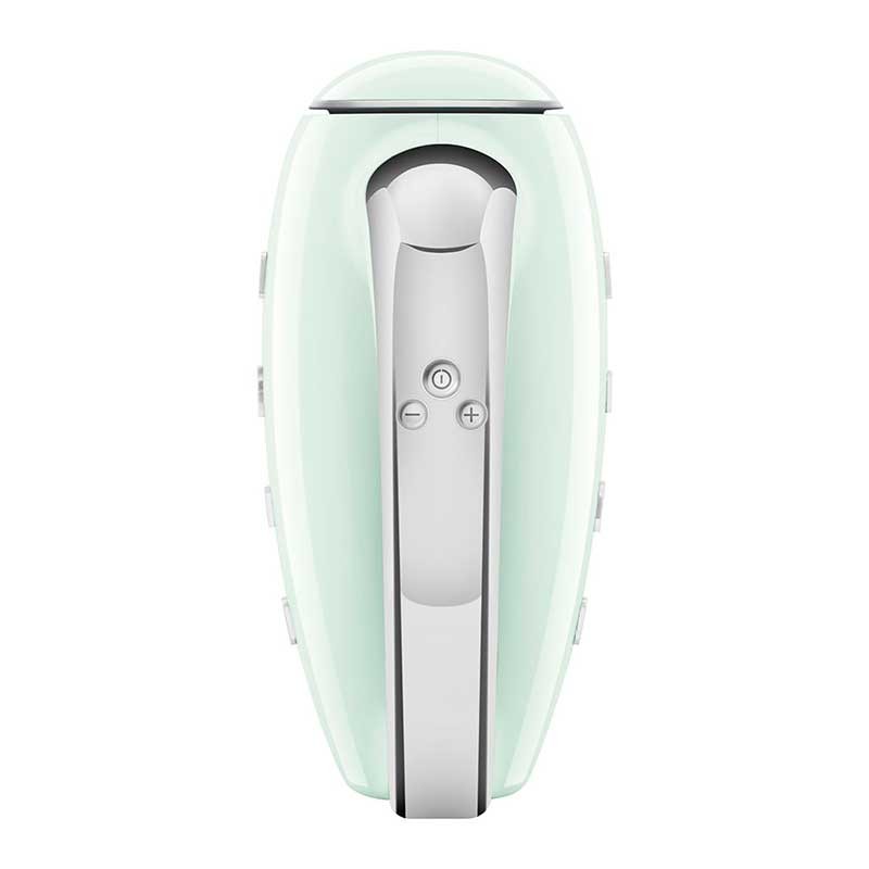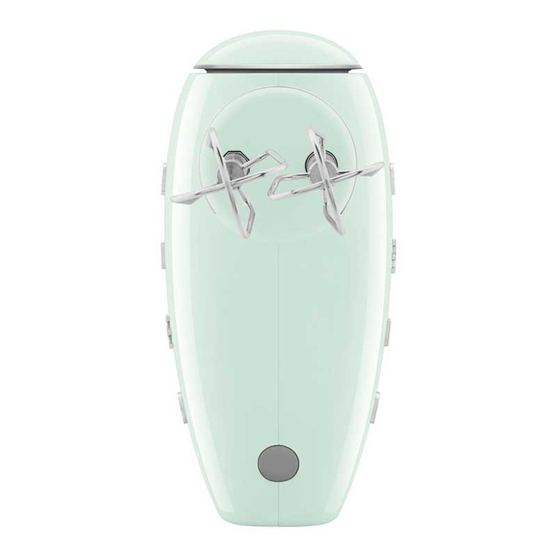 Batidora eléctrica de varillas Smeg 50's Style acabado verde agua brillo con 250 W de potencia, 9 niveles de velocidad y función turbo.