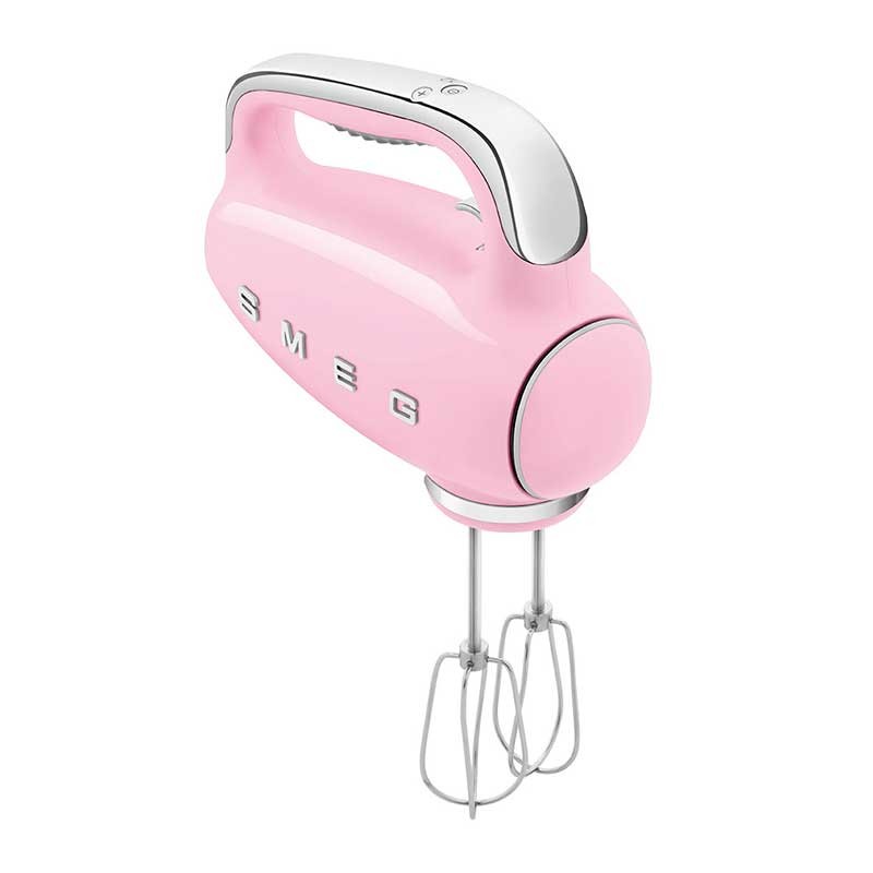 Batidora eléctrica de varillas Smeg 50's Style acabado rosa brillo con 250 W de potencia, 9 niveles de velocidad y función turbo.