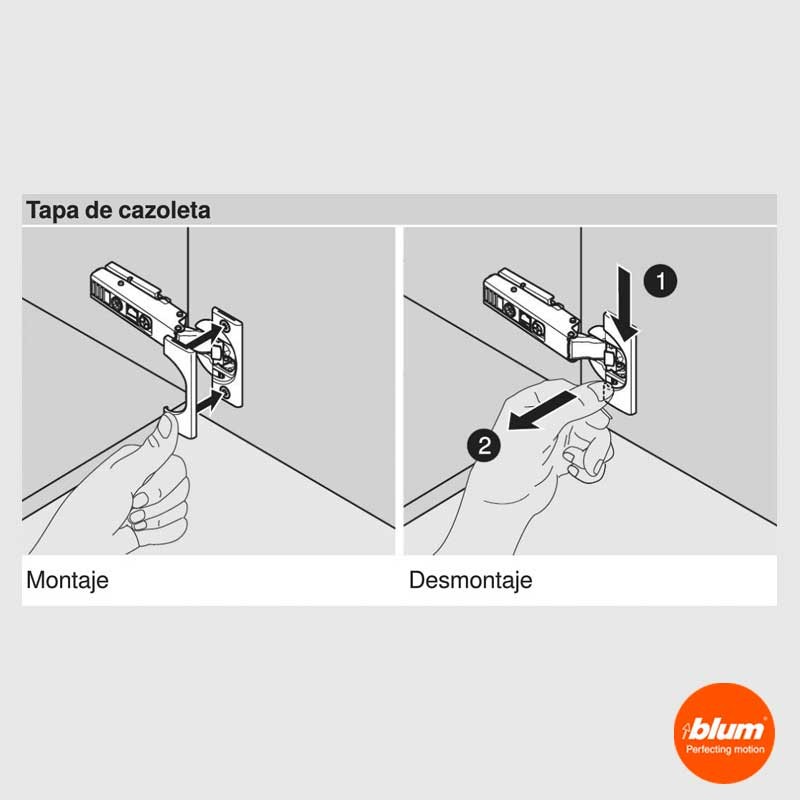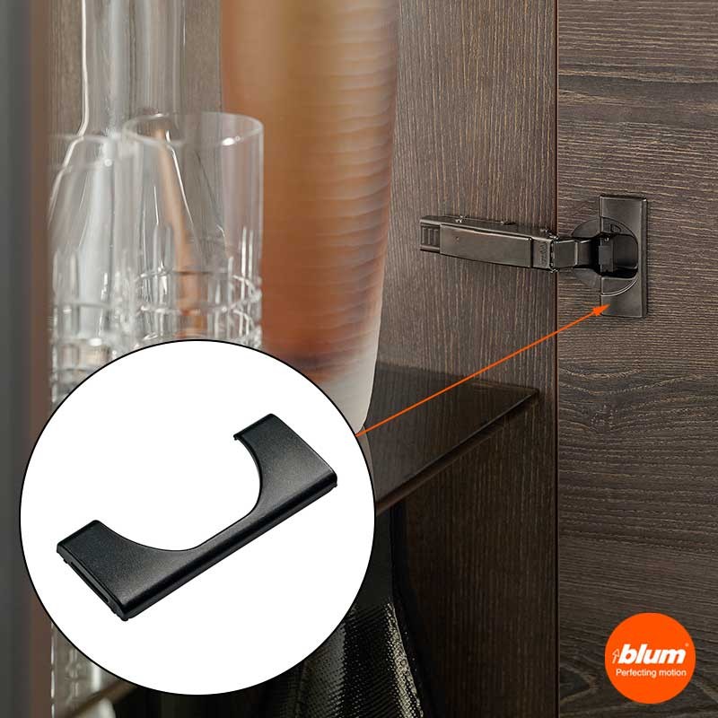 Tapa de acero en color negro ónix para cazoleta de bisagras CLIP Top y CLIP Top BLUMOTION de Blum. Montaje a presión.