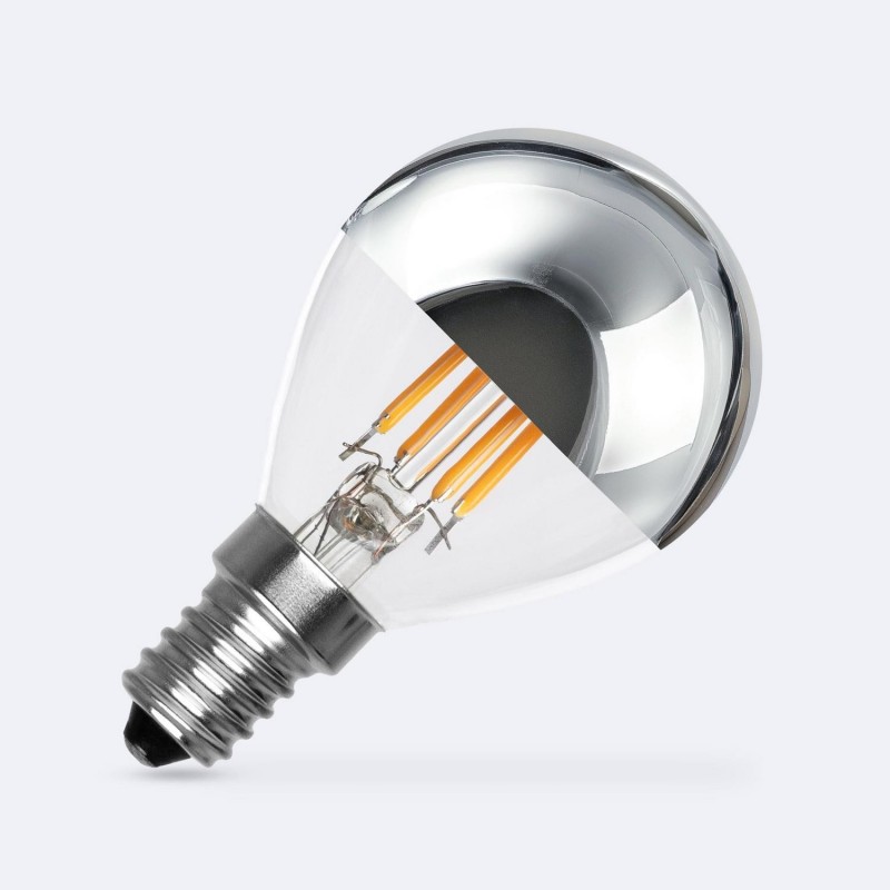 La bombilla filamento LED E14 4W 400 lm G45 Chrome Reflect es una opción moderna y eficiente para reemplazar bombillas tradicionales de 60W.