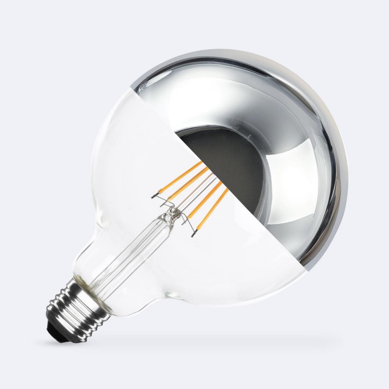 La bombilla filamento LED E27 8W 800 lm G125 Chrome Reflect te permite crear espacios acogedores y personalizados, manteniendo la eficiencia energética y el estilo retro único que buscas.