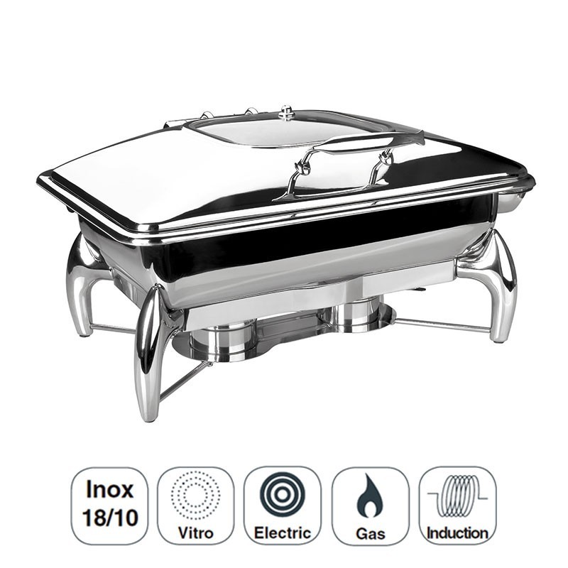Chafing Dish GN 1/1 gama Luxe fabricado en acero inoxidable 18/10 de alta calidad y excelente resistencia a la corrosión. Ideal para hostelería y buffets.
