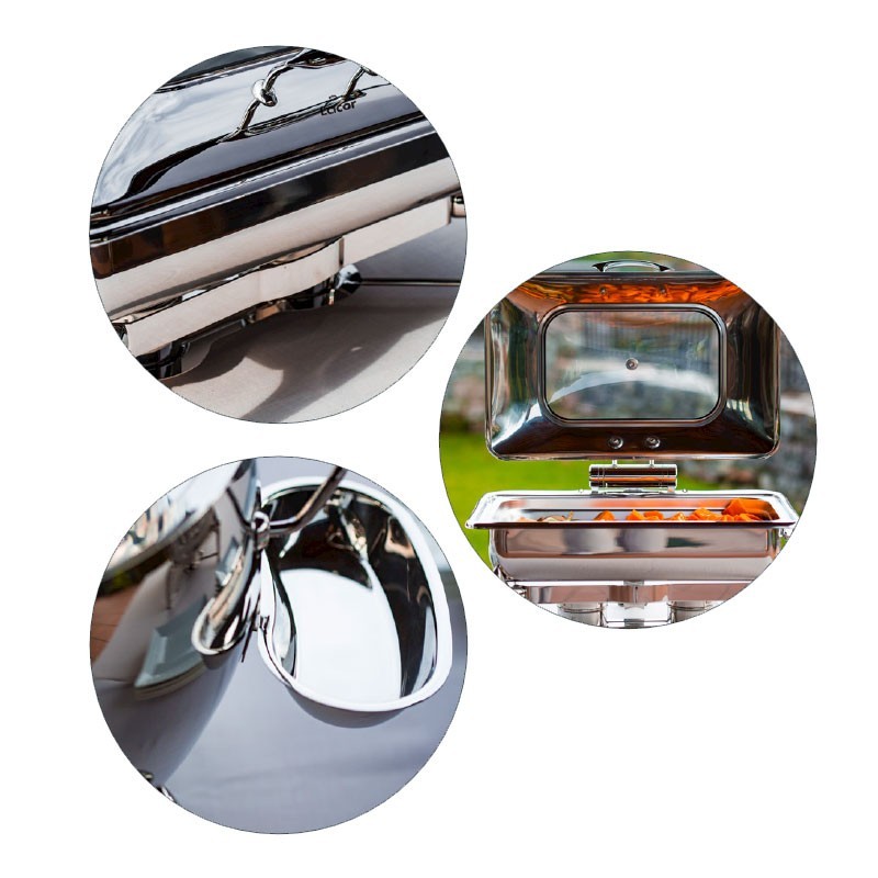 La gama LUXE de Chafing Dish está diseñada especialmente para los profesionales de la cocina, tanto en hostelería, como restauración, buffets y grandes celebraciones y eventos, donde mantener la temperatura de los alimentos que se van a servir a los comensales es de suma importancia. La gama LUXE está fabricada en acero inoxidable 18/10 de alta calidad que ofrece una garantía máxima en cuanto a resistencia, durabilidad e higiene.
