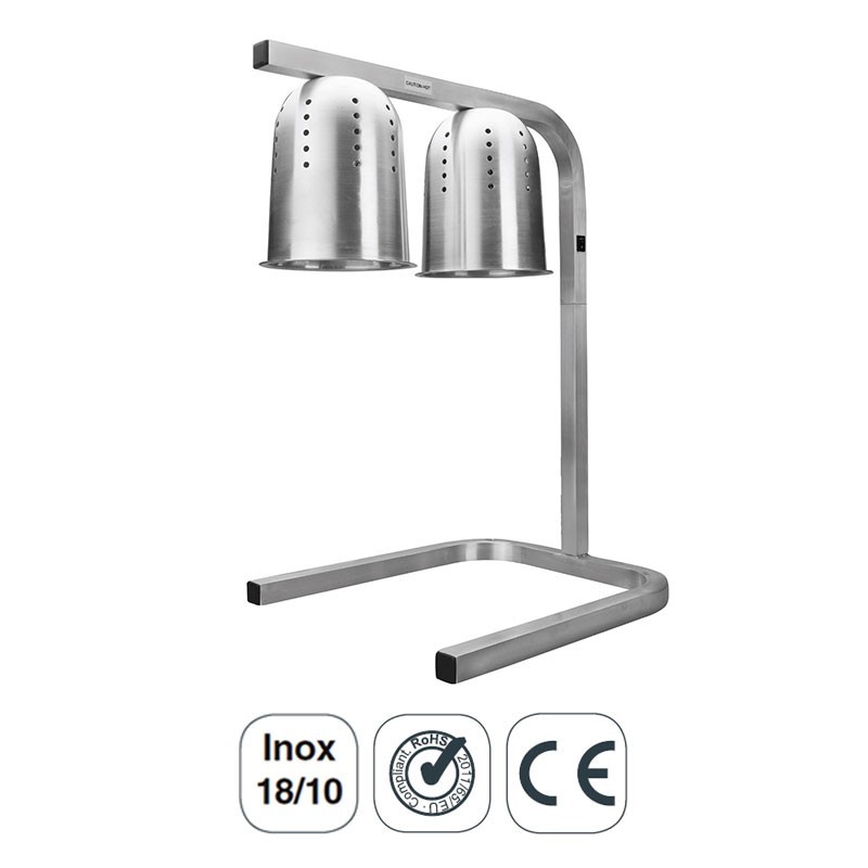 Lámpara de calentamiento de 2 focos de infrarrojos de 550 W fabricada en aluminio para mantener los platos calientes en cocinas profesionales, hostelería y buffets.