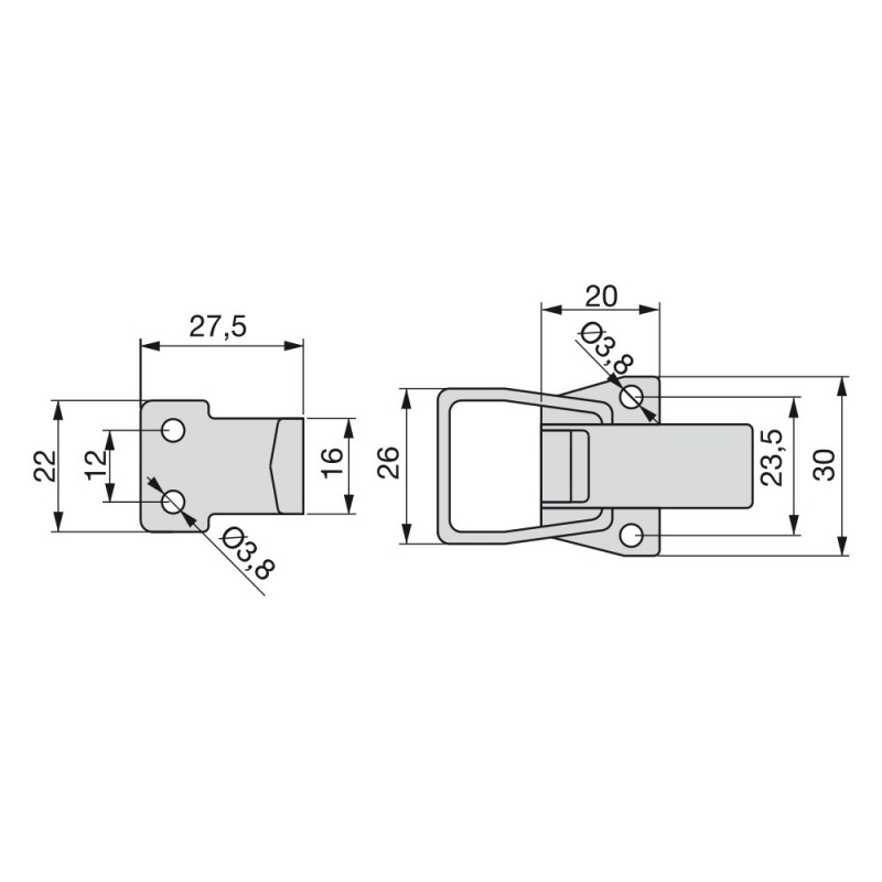 Cierre de palanca para muebles que proporcionan un enganche mecánico con acción de tracción de palanca. Su ajuste tensor une los paneles y los mantiene unidos de forma segura. Su montaje se realiza atornillado al tablero con una distancia de instalación de 52 mm.