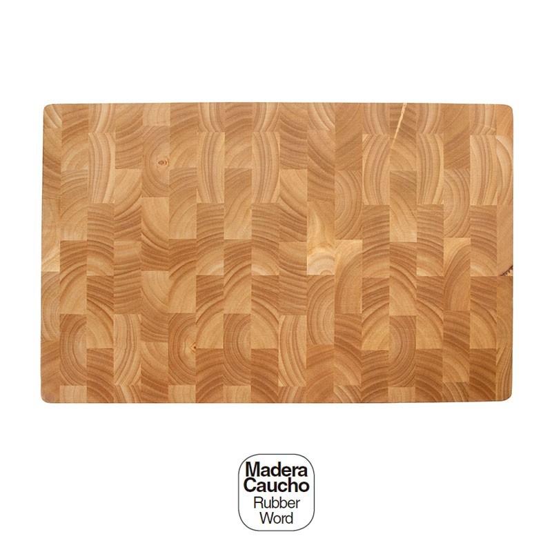 Tabla de corte para cocina fabricada en madera de caucho tratada con un revestimiento protector y anti-bacteriano. Disponible en 2 tamaños.