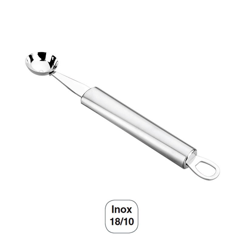 Cortador de bolas serie Luxe de 3x1 cm de corte y 19 cm de largo total fabricado en acero inoxidable 18/10 de alta calidad y excelente resistencia a la corrosión.