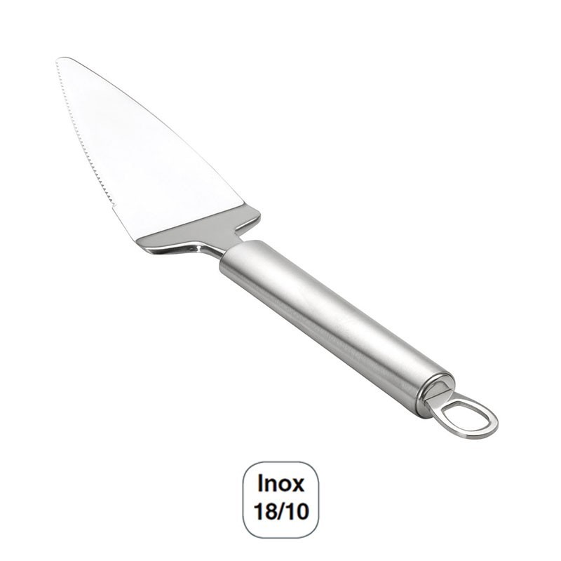 Pala serrada para pastel serie Luxe de 5,5x13 cm y 26 cm de largo total fabricada en acero inoxidable 18/10 de alta calidad y excelente resistencia a la corrosión.