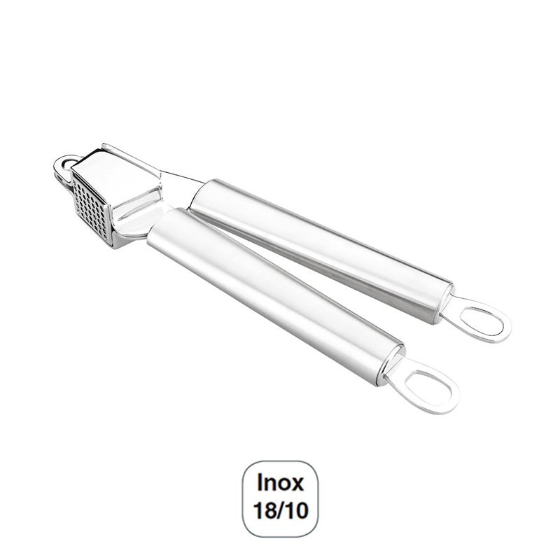 Prensa de ajos serie Luxe de 3x5 cm y 18 cm de largo total fabricada en acero inoxidable 18/10 de alta calidad y excelente resistencia a la corrosión.