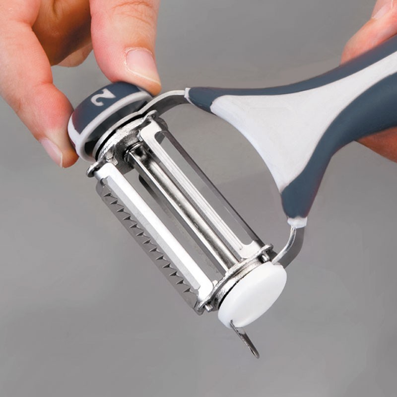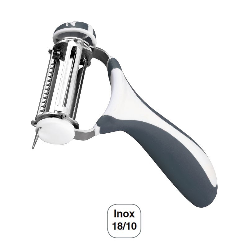 Pelador tipo "Y" de 20 cm de largo con 3 cuchillas giratorias de acero inoxidable 18/10 de alta calidad y resistencia a la corrosión.