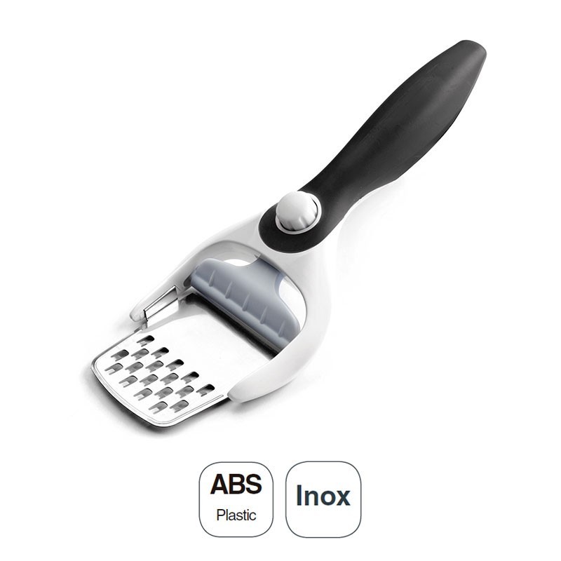Rallador y laminador de queso 2 en 1 de 23,5 cm de largo fabricado en acero inoxidable y mango de ABS.
