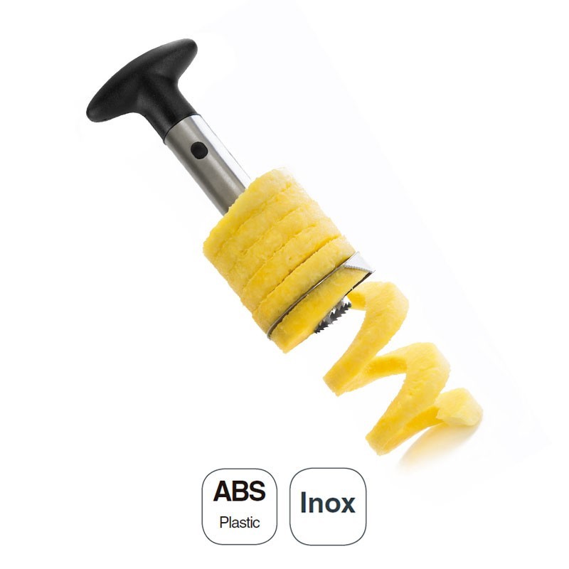 Pelador de piña de 10 cm de diámetro y 23 cm de largo fabricado en acero inoxidable y mango de ABS.