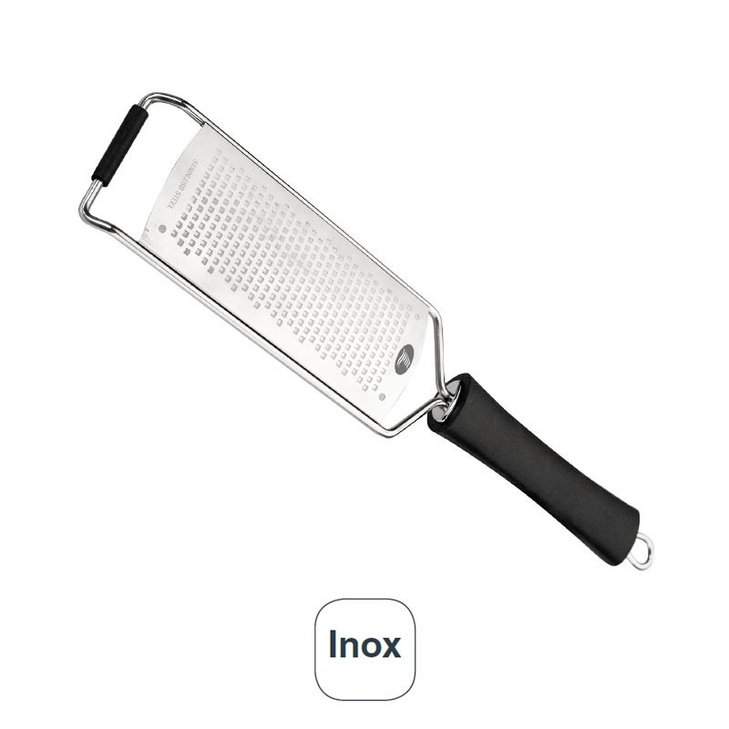 Rallador con mango y paso extra fino fabricado en acero inoxidable 18/10 de alta calidad y excelente resistencia a la corrosión.