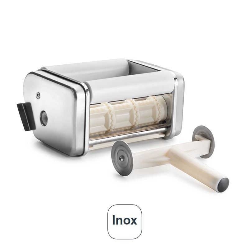 Accesorio para hacer raviolis en máquina laminadora de pasta. Compatible sólo con la máquina de Lacor de 145 mm Ref. 60390. Disponible para 2 tamaños de raviolis.