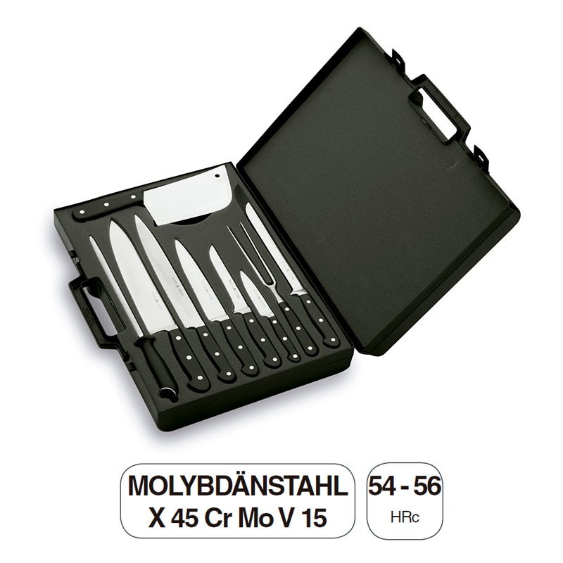 Maleta de cuchillos de cocina semiprofesional de 9 piezas serie Classic con hoja forjada Molybdänstahl X 45 Cr Mo V 15 de dureza 54-56 HRc.